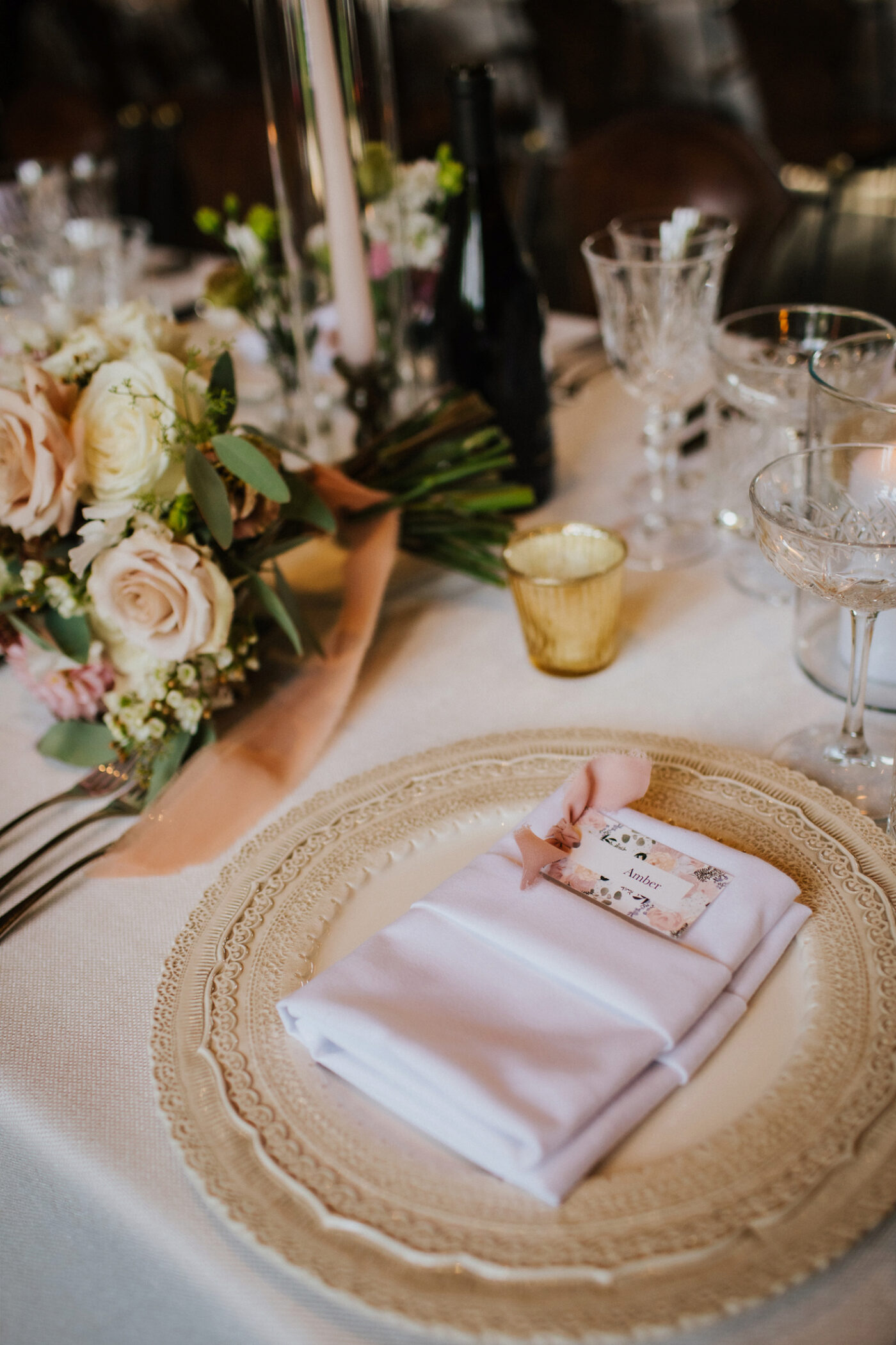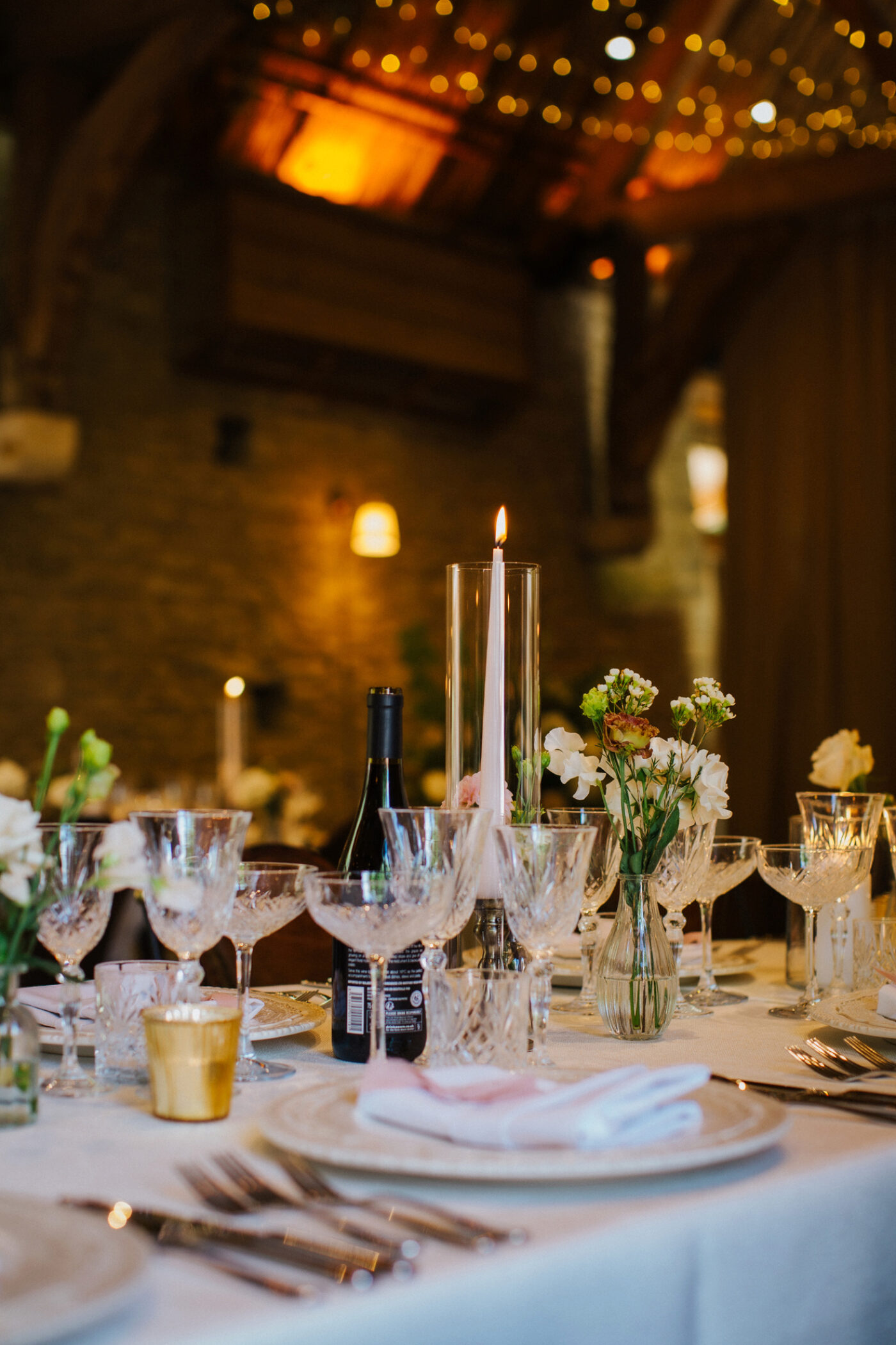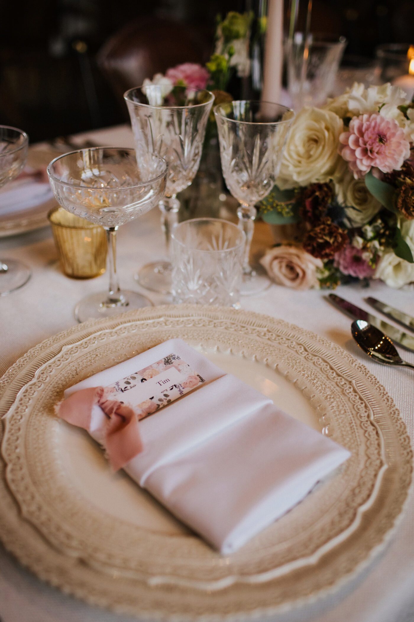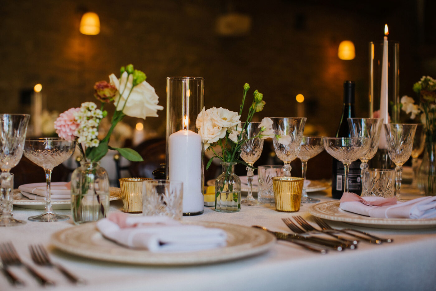 From the ceremony to the wedding breakfast, every moment was styled with understated grandeur — striking the perfect balance between polished elegance and the venue's rustic character. Lush floral arrangements in creamy whites, warm peach tones, and delicate neutrals added texture and depth, while tablescapes featured soft linens, golden accents, and a glow of candlelight for a warm, inviting atmosphere.