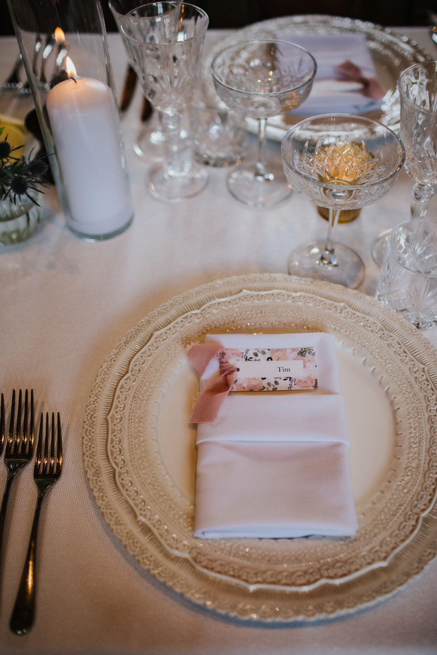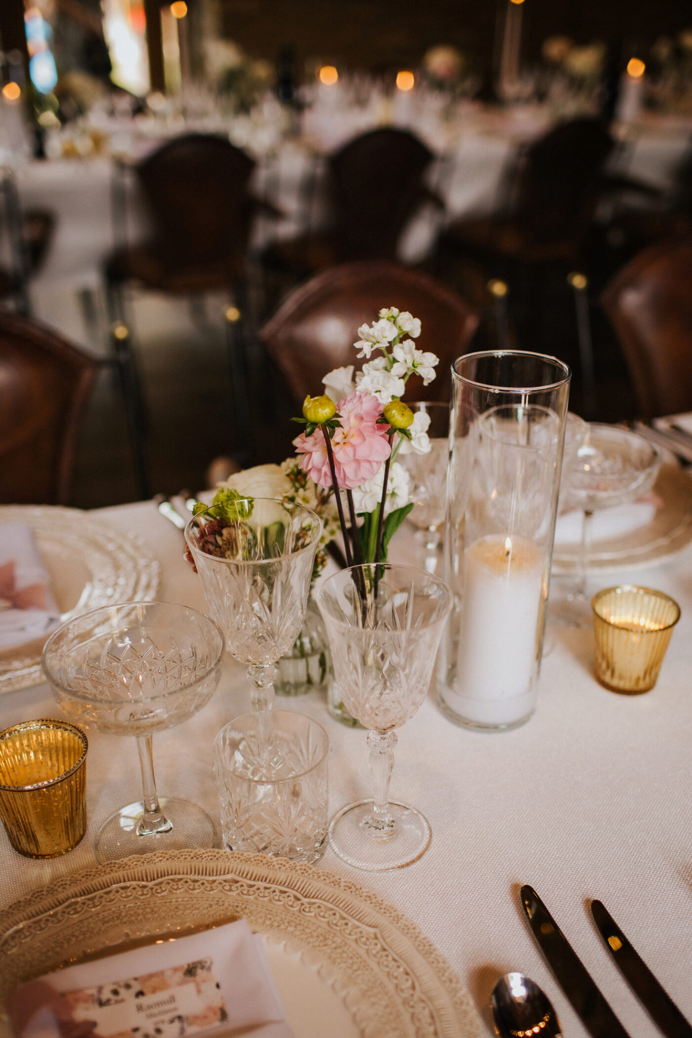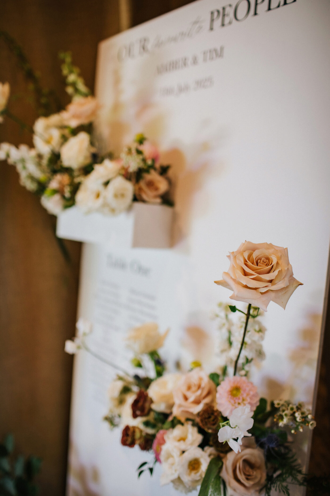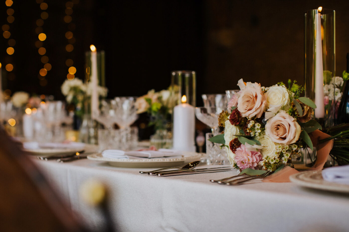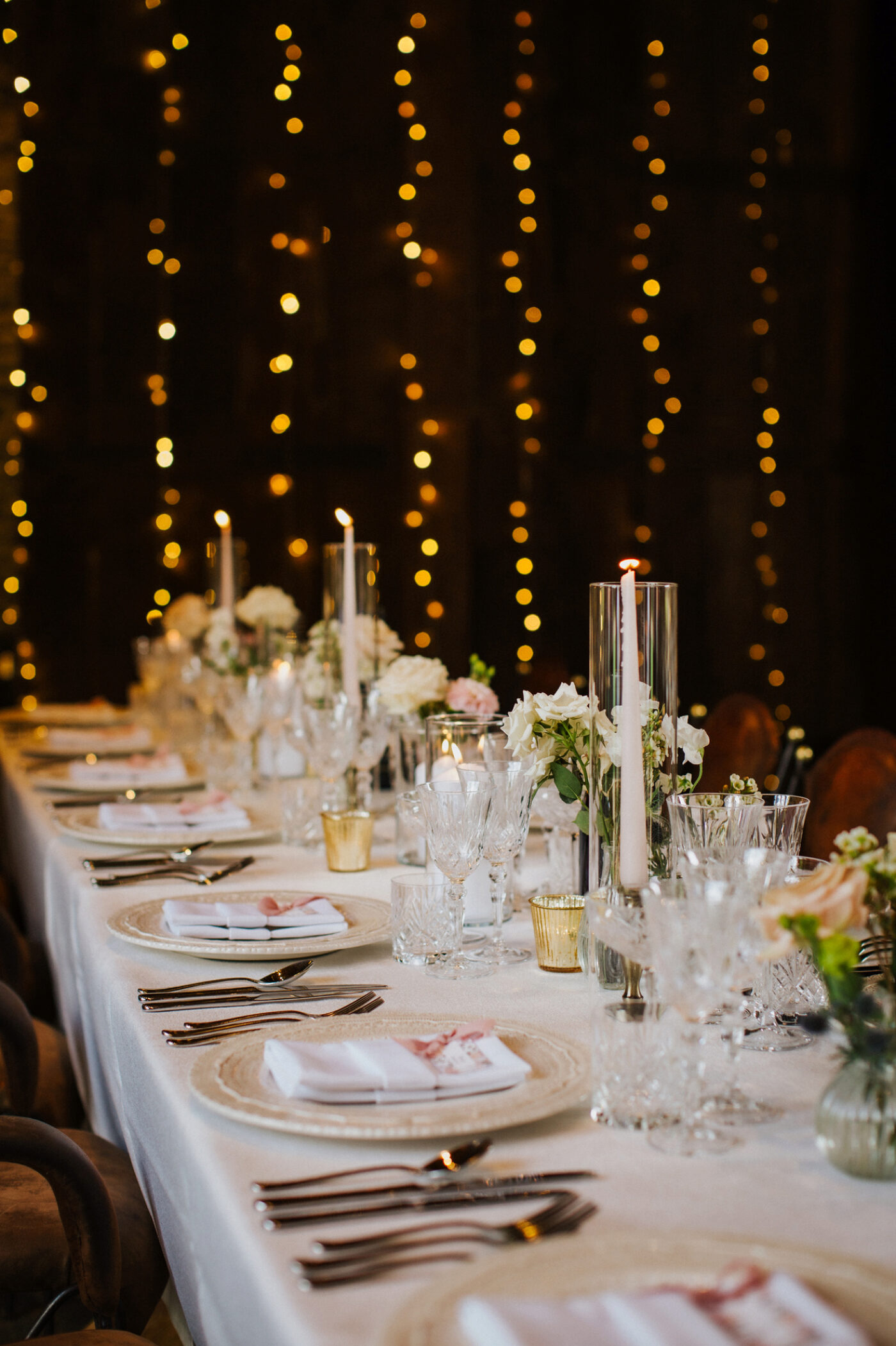 From the ceremony to the wedding breakfast, every moment was styled with understated grandeur — striking the perfect balance between polished elegance and the venue's rustic character. Lush floral arrangements in creamy whites, warm peach tones, and delicate neutrals added texture and depth, while tablescapes featured soft linens, golden accents, and a glow of candlelight for a warm, inviting atmosphere.