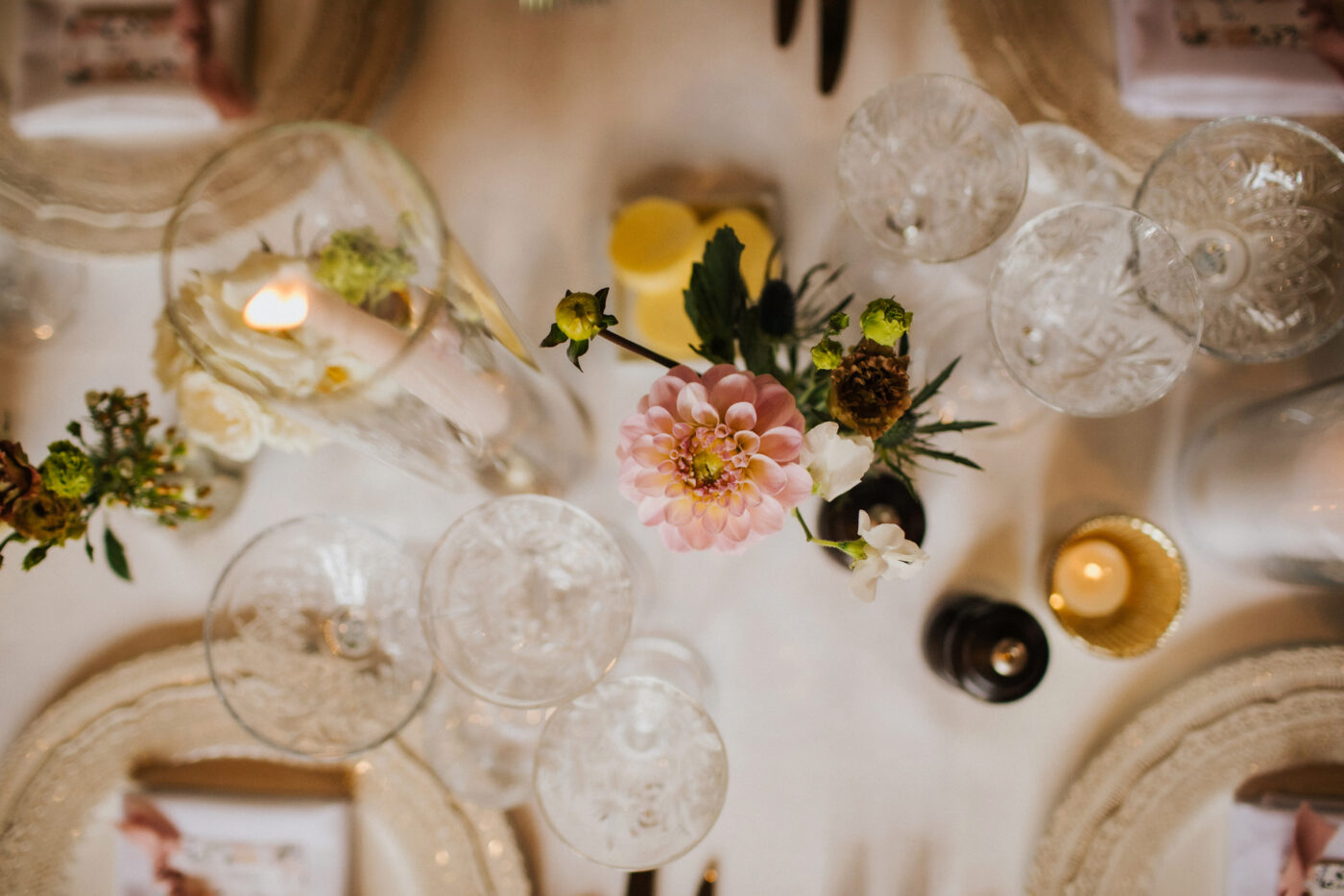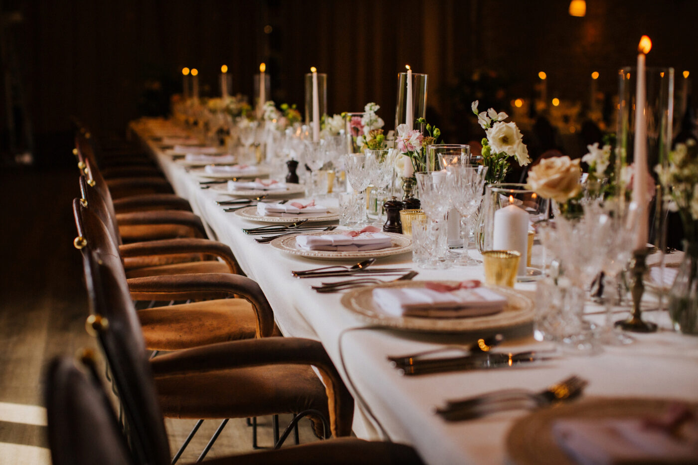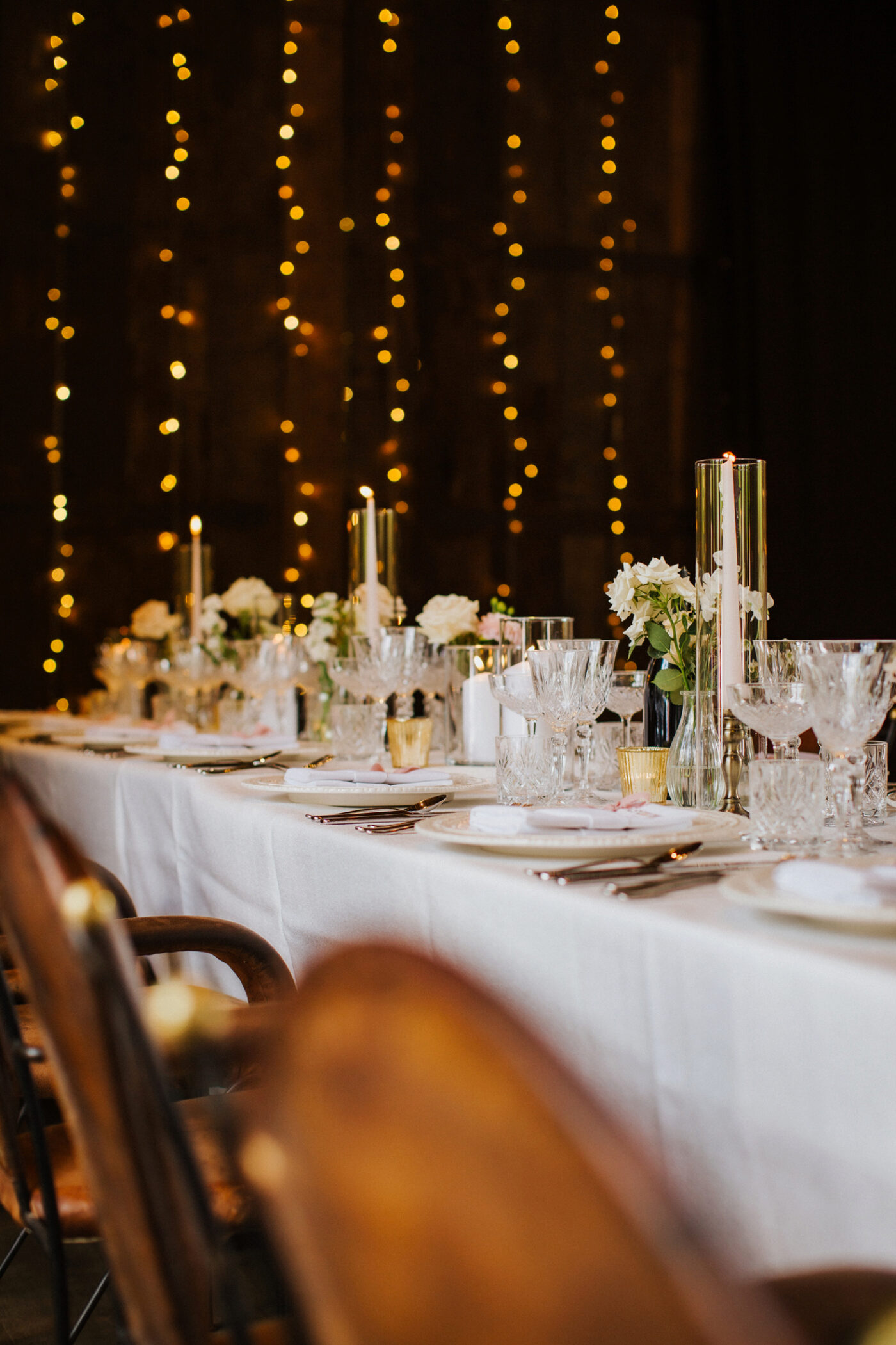 The celebration was designed to be timeless and atmospheric, honouring Tythe's natural beauty while layering in luxe details. A refined palette of gold and white formed the foundation, elevated with soft washes of vintage peach and nude for a romantic, sophisticated edge.