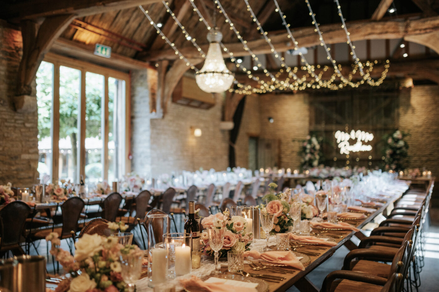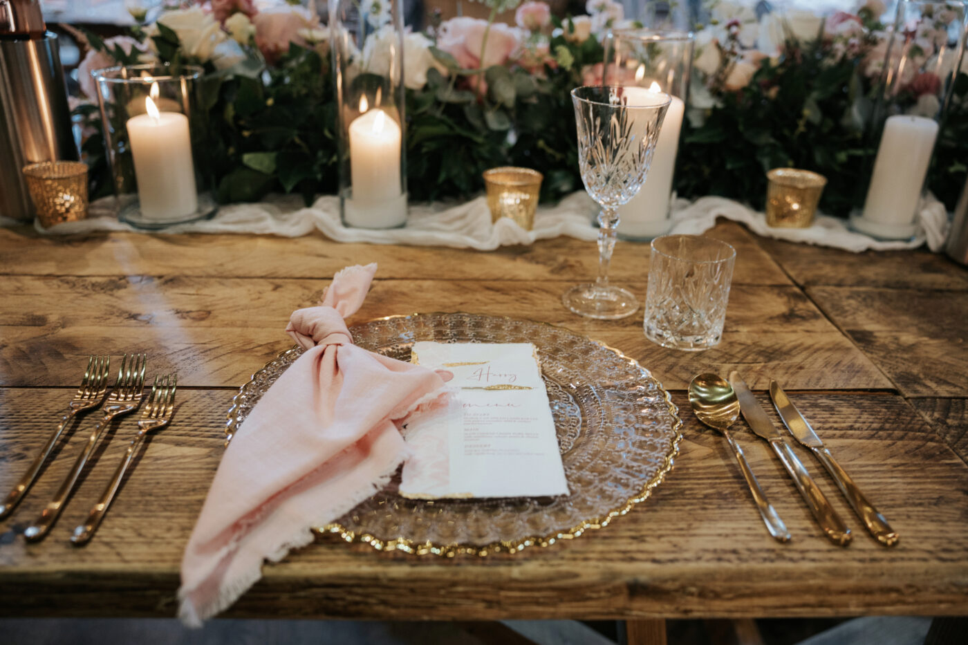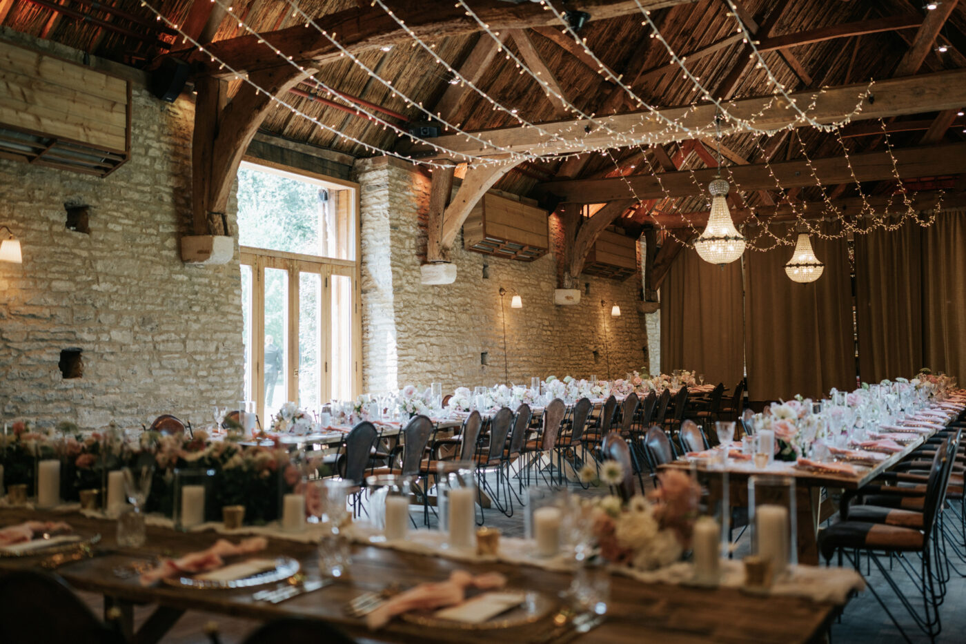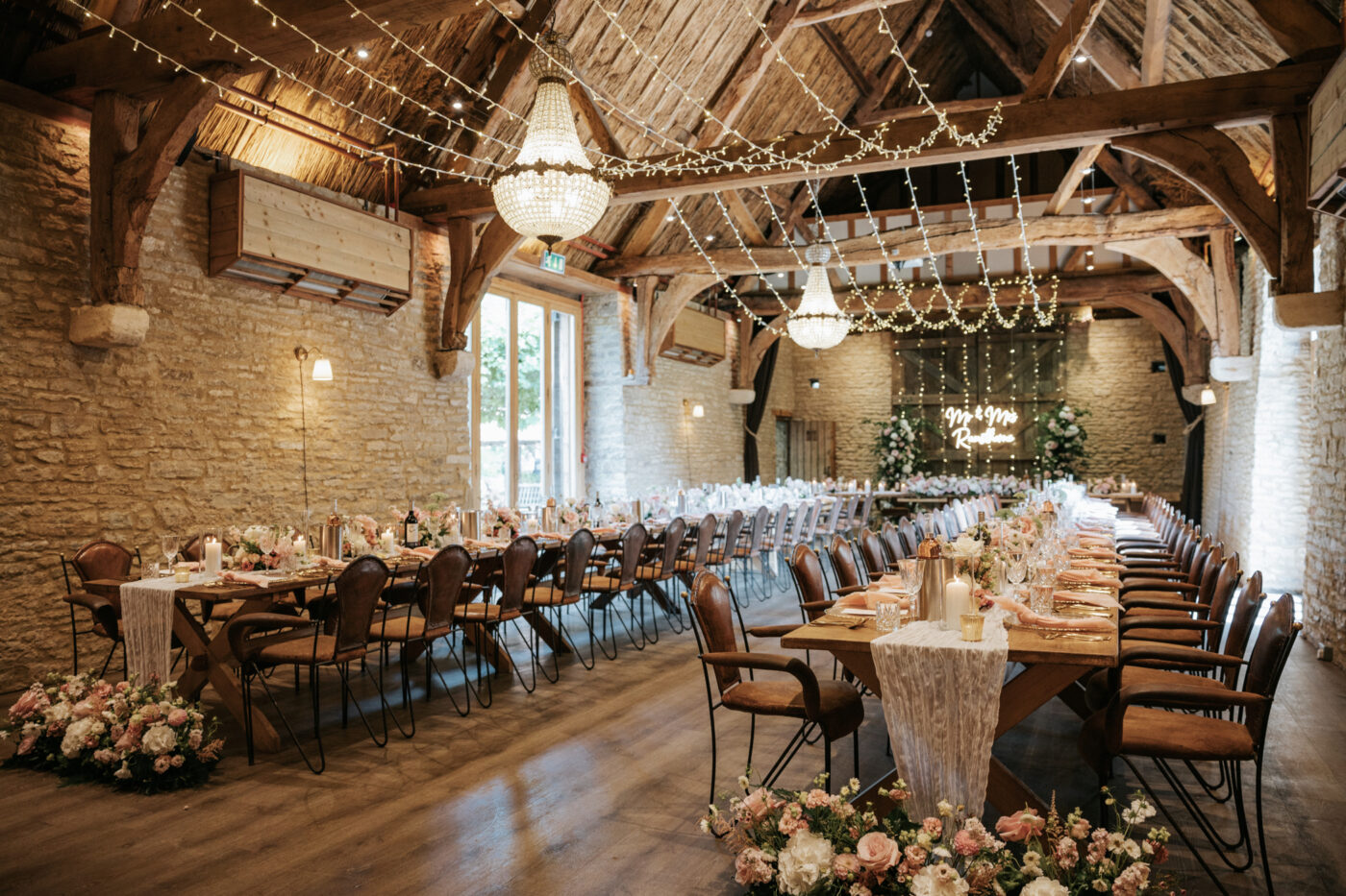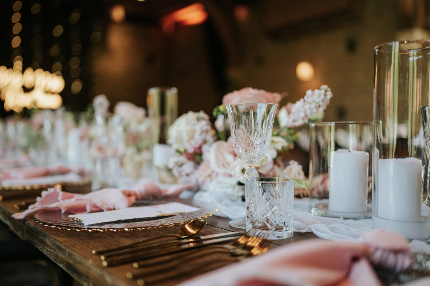 The styling unified the ceremony and wedding breakfast, dressing natural wooden tables with delicate fabrics, organic florals, and gold accents—striking a perfect balance between rustic and refined. Florals in pinks, blush and ivory enhanced the space with understated abundance.