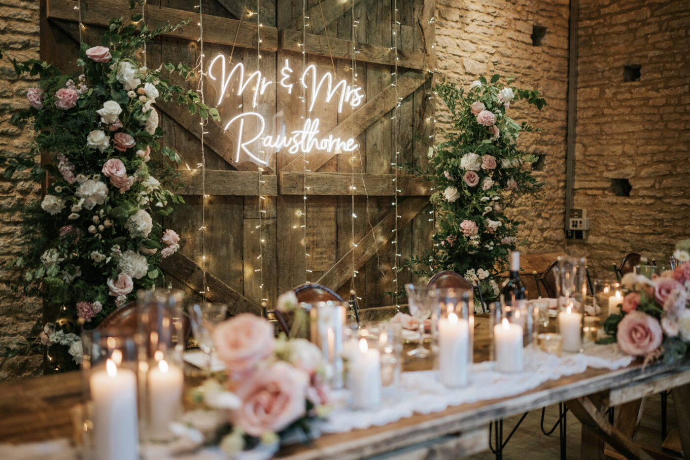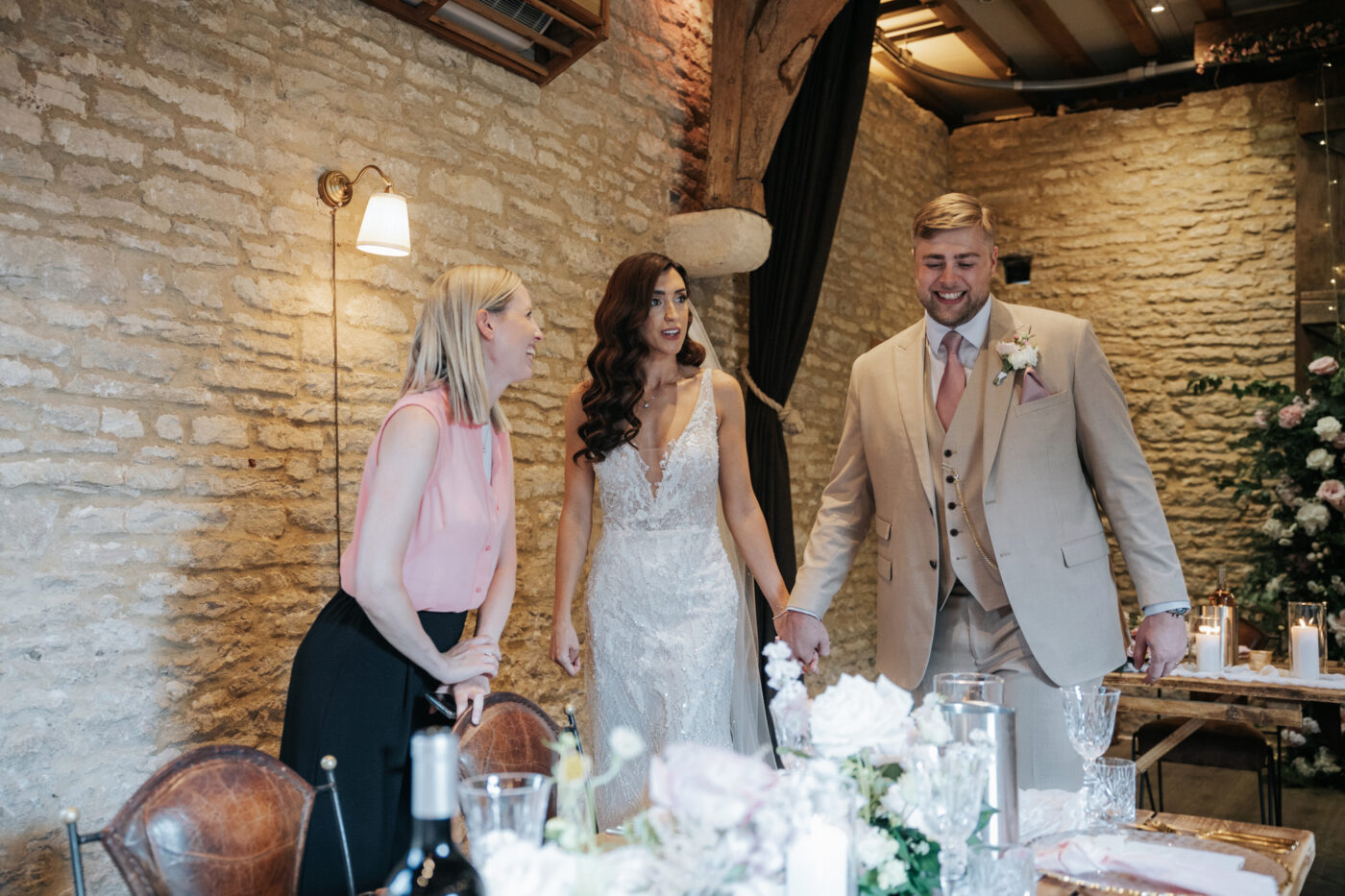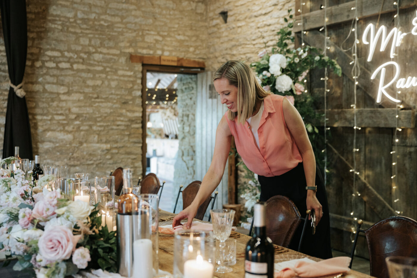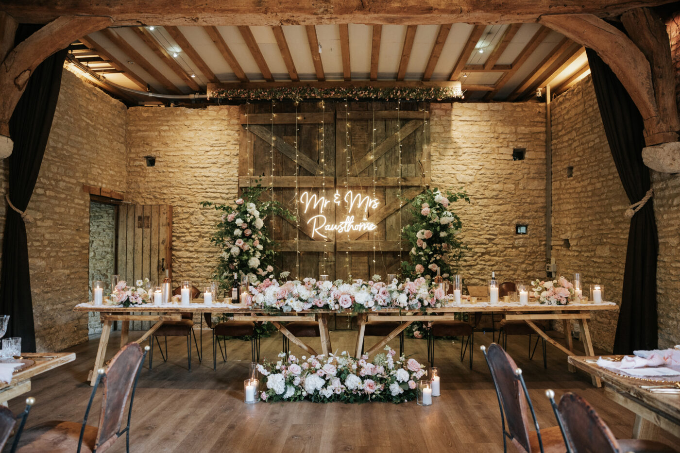 The styling unified the ceremony and wedding breakfast, dressing natural wooden tables with delicate fabrics, organic florals, and gold accents—striking a perfect balance between rustic and refined. Florals in pinks, blush and ivory enhanced the space with understated abundance.