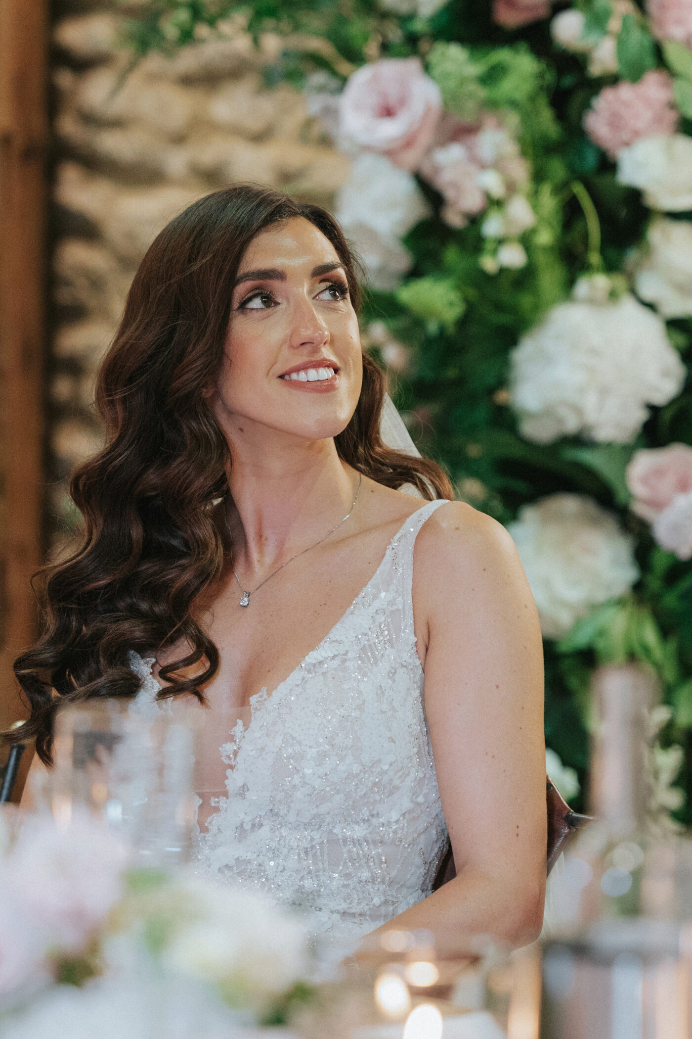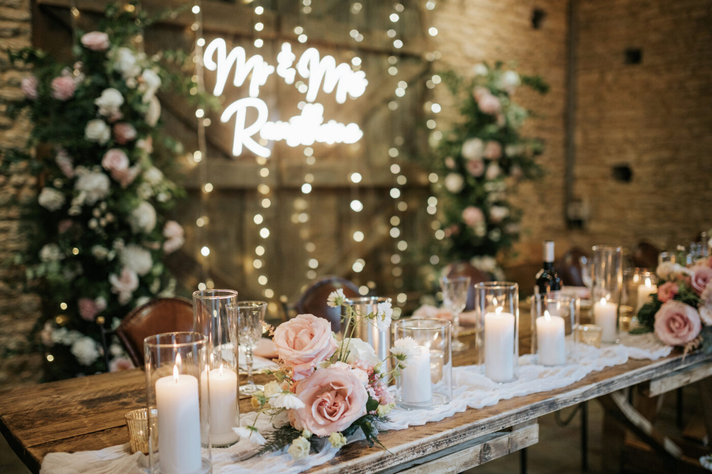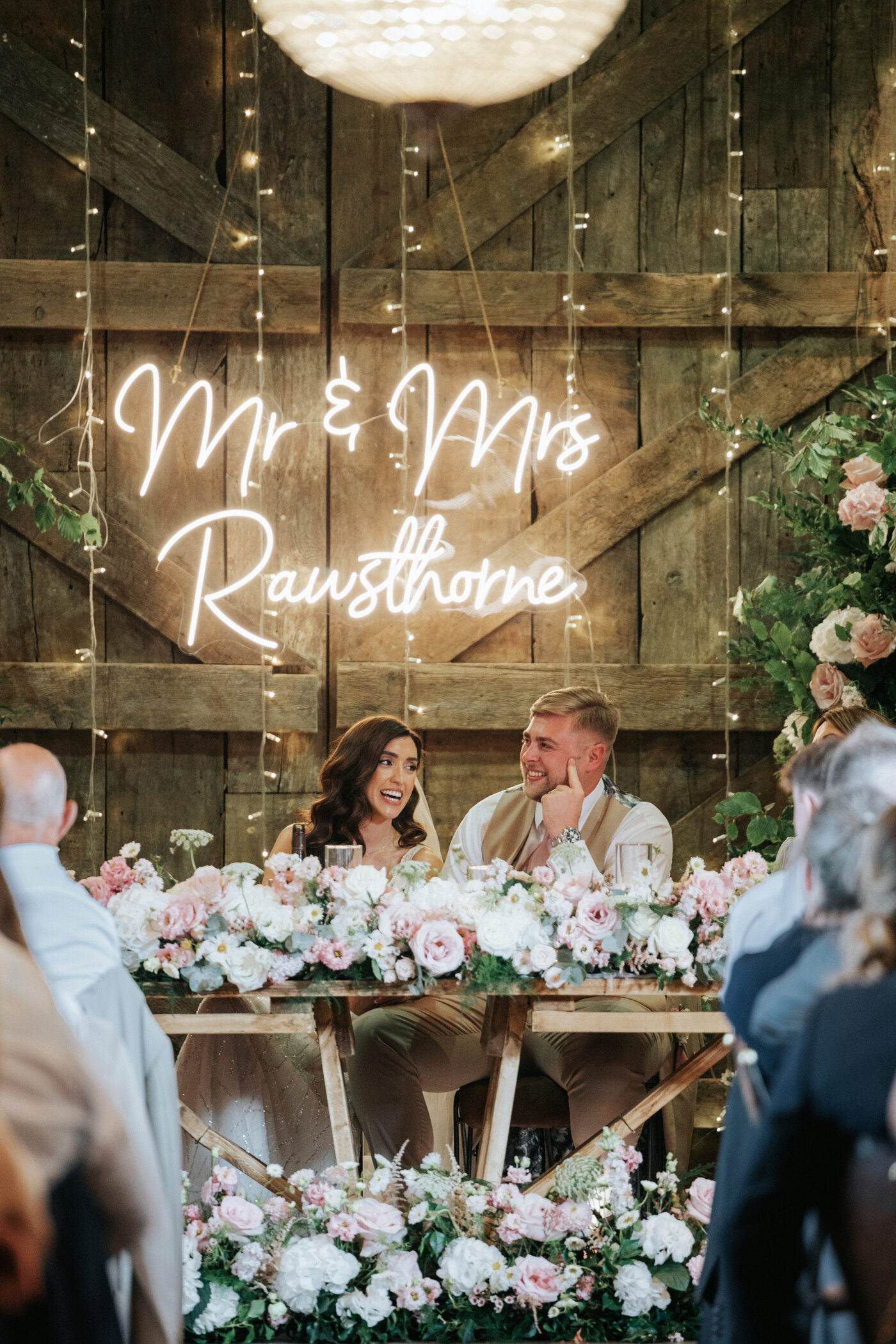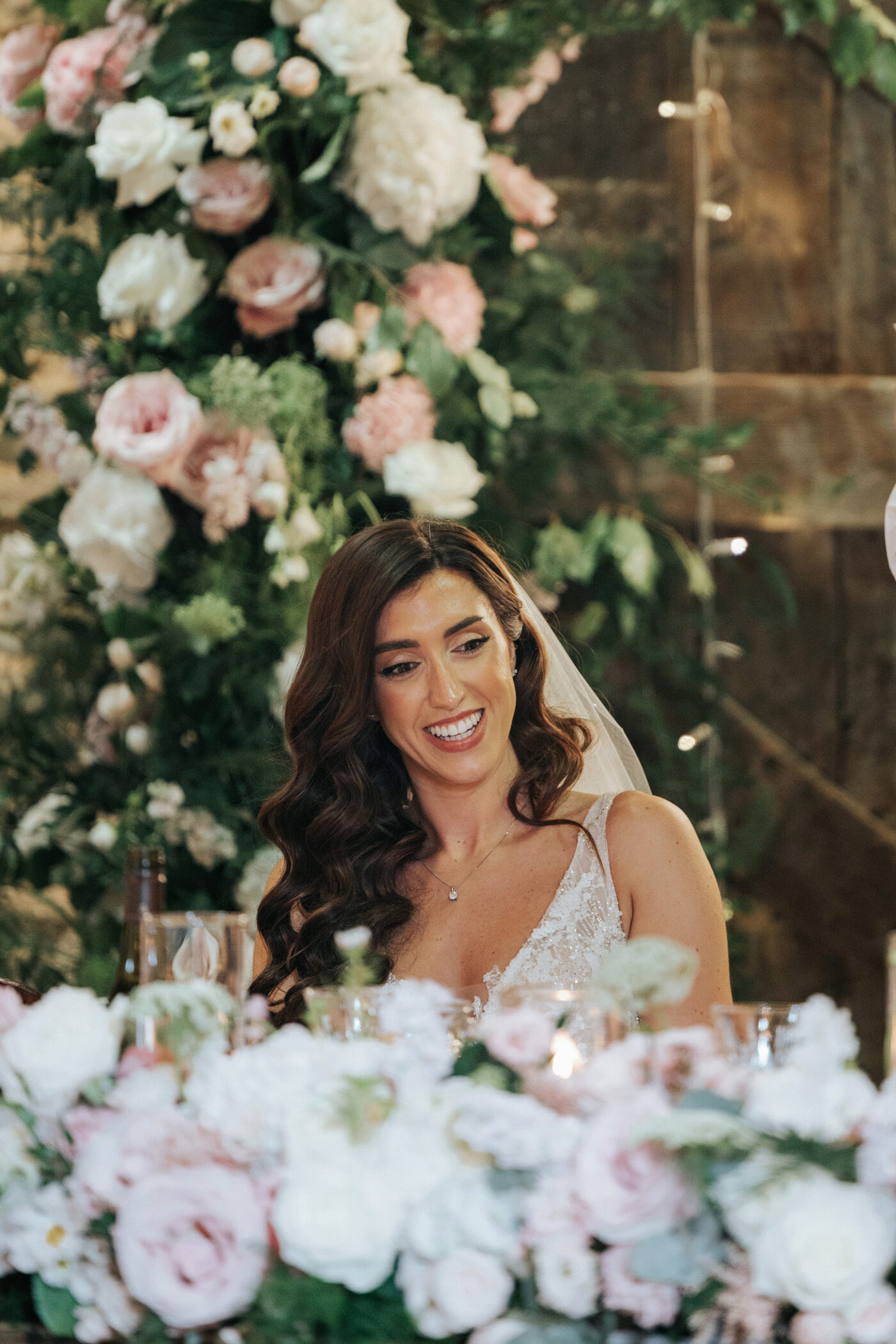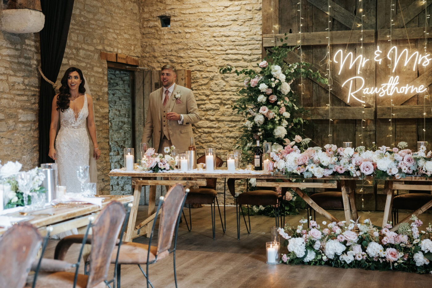 The styling unified the ceremony and wedding breakfast, dressing natural wooden tables with delicate fabrics, organic florals, and gold accents—striking a perfect balance between rustic and refined. Florals in pinks, blush and ivory enhanced the space with understated abundance.