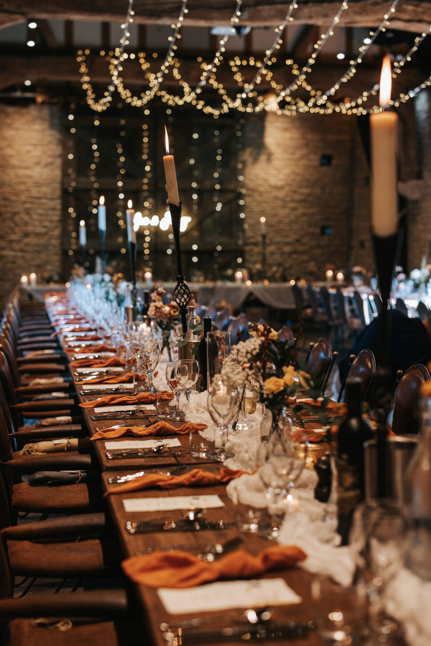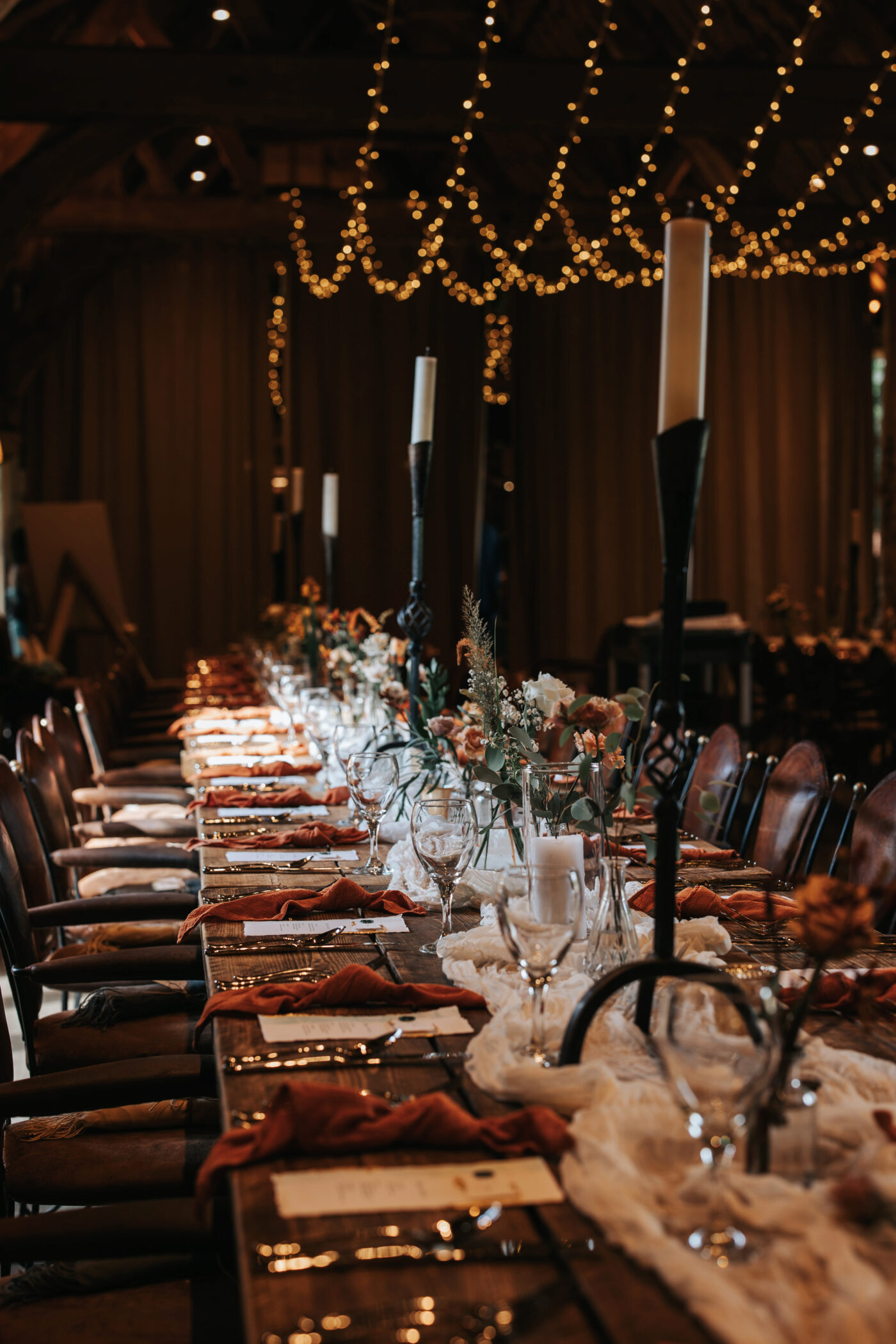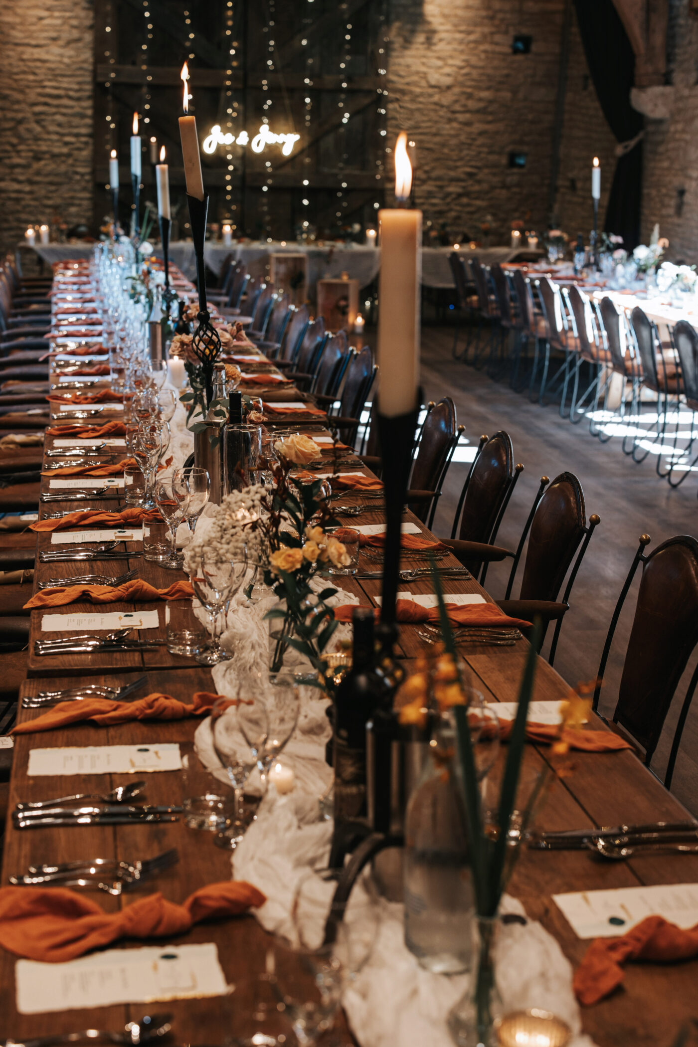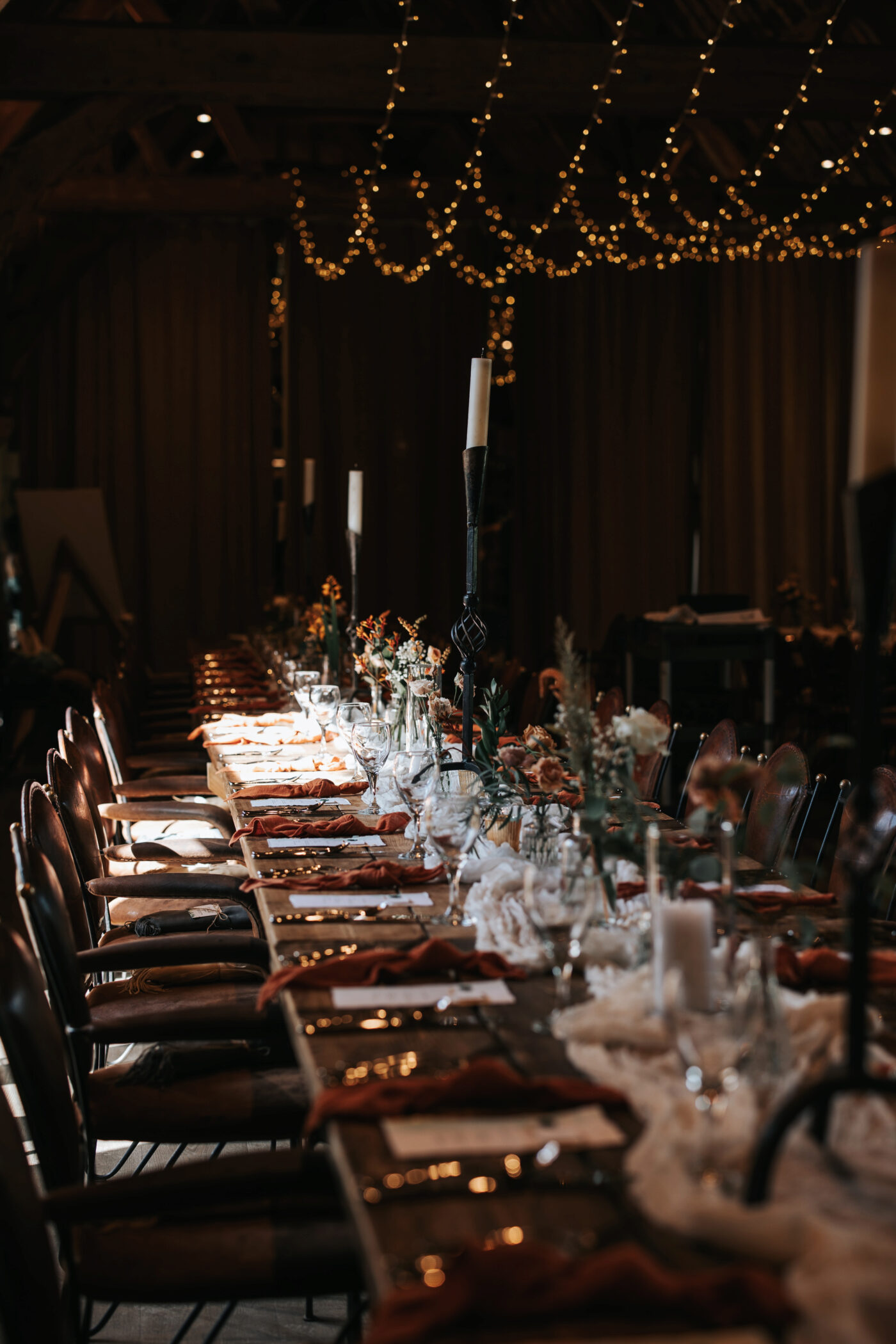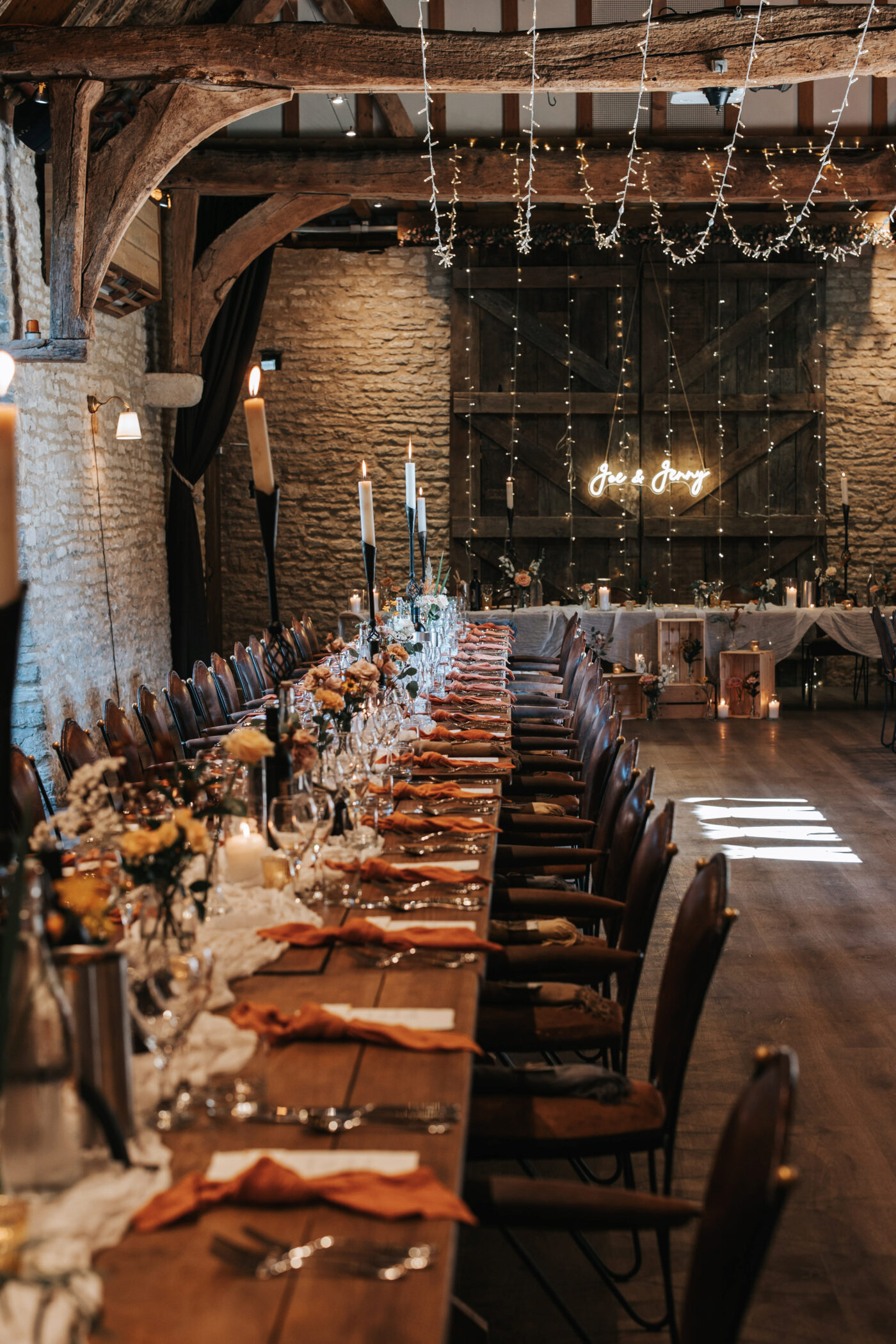 A rustic celebration in Oxfordshire, styled with a warm, earthy palette of terracotta, rust, greens, and creams to evoke natural elegance. The full ceremony and wedding breakfast styling emphasized authenticity and texture, with raw wooden tables dressed in flowing linens, layered ceramics, and seasonal florals.