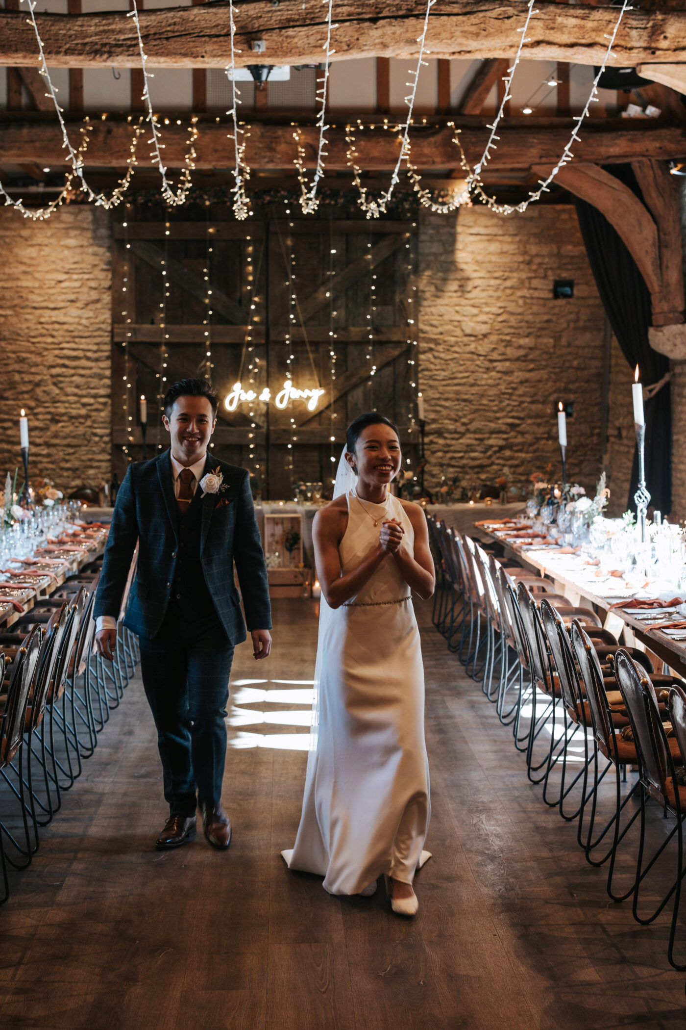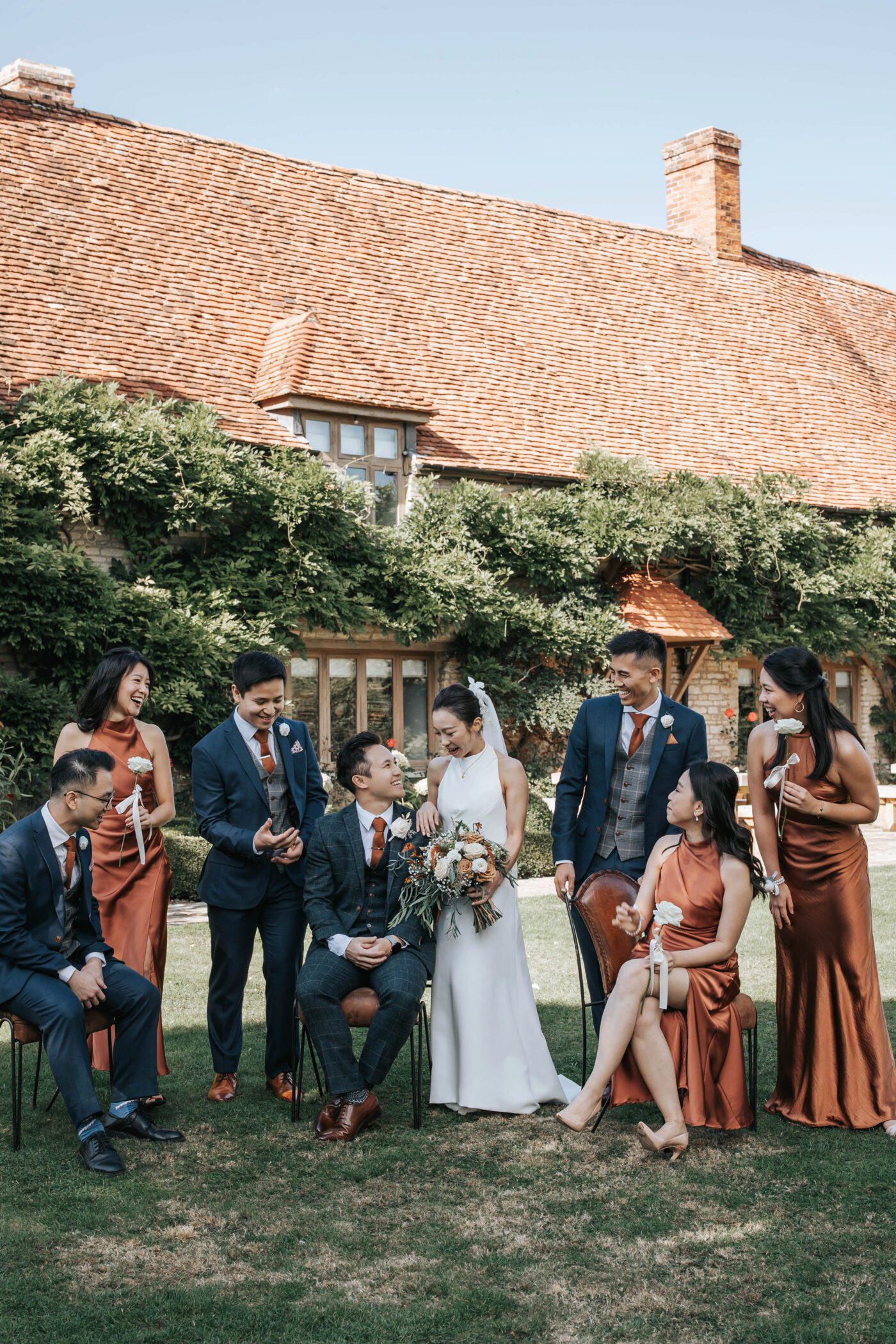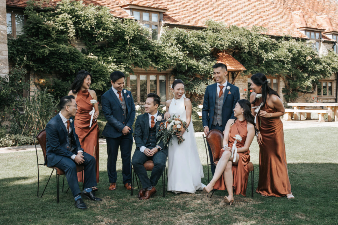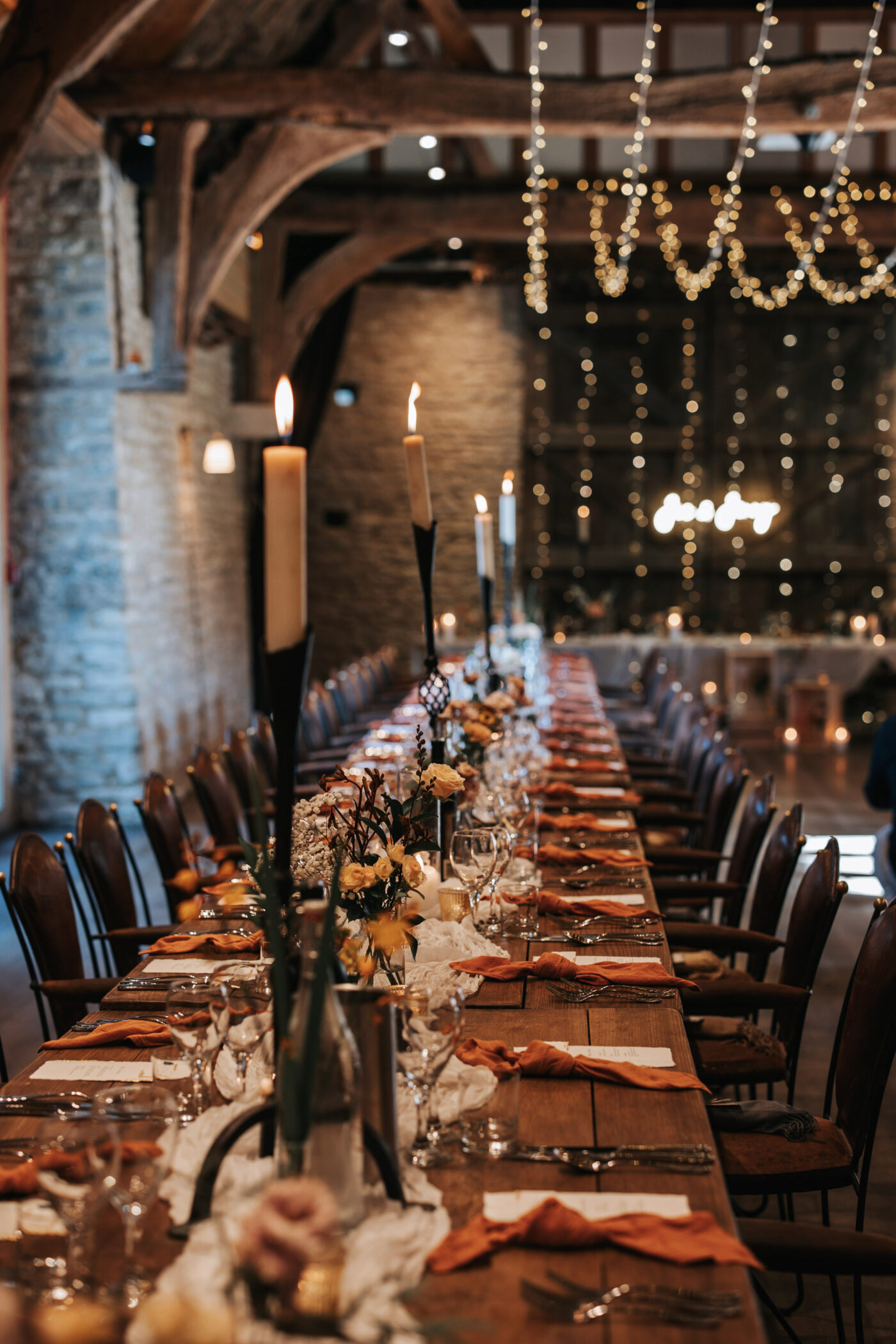 A rustic celebration in Oxfordshire, styled with a warm, earthy palette of terracotta, rust, greens, and creams to evoke natural elegance. The full ceremony and wedding breakfast styling emphasized authenticity and texture, with raw wooden tables dressed in flowing linens, layered ceramics, and seasonal florals.