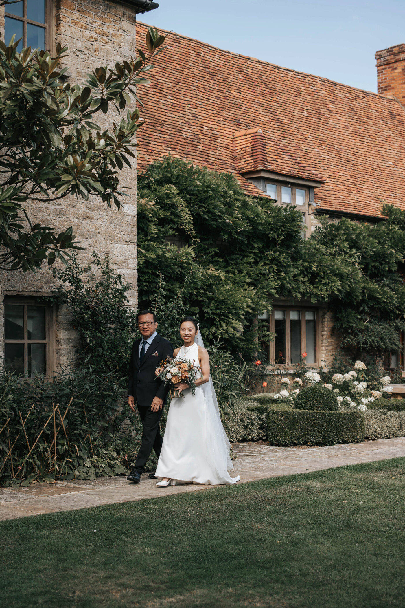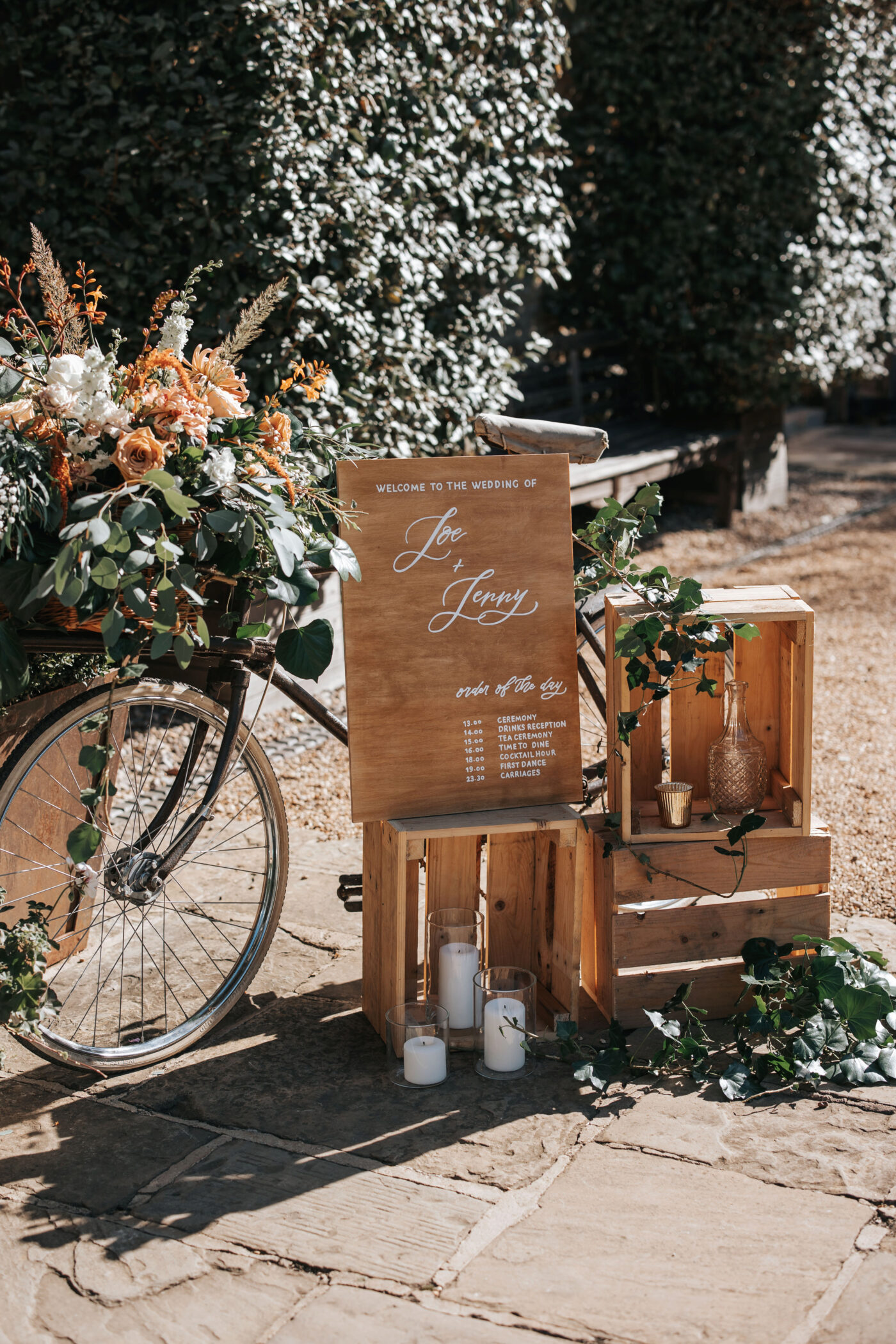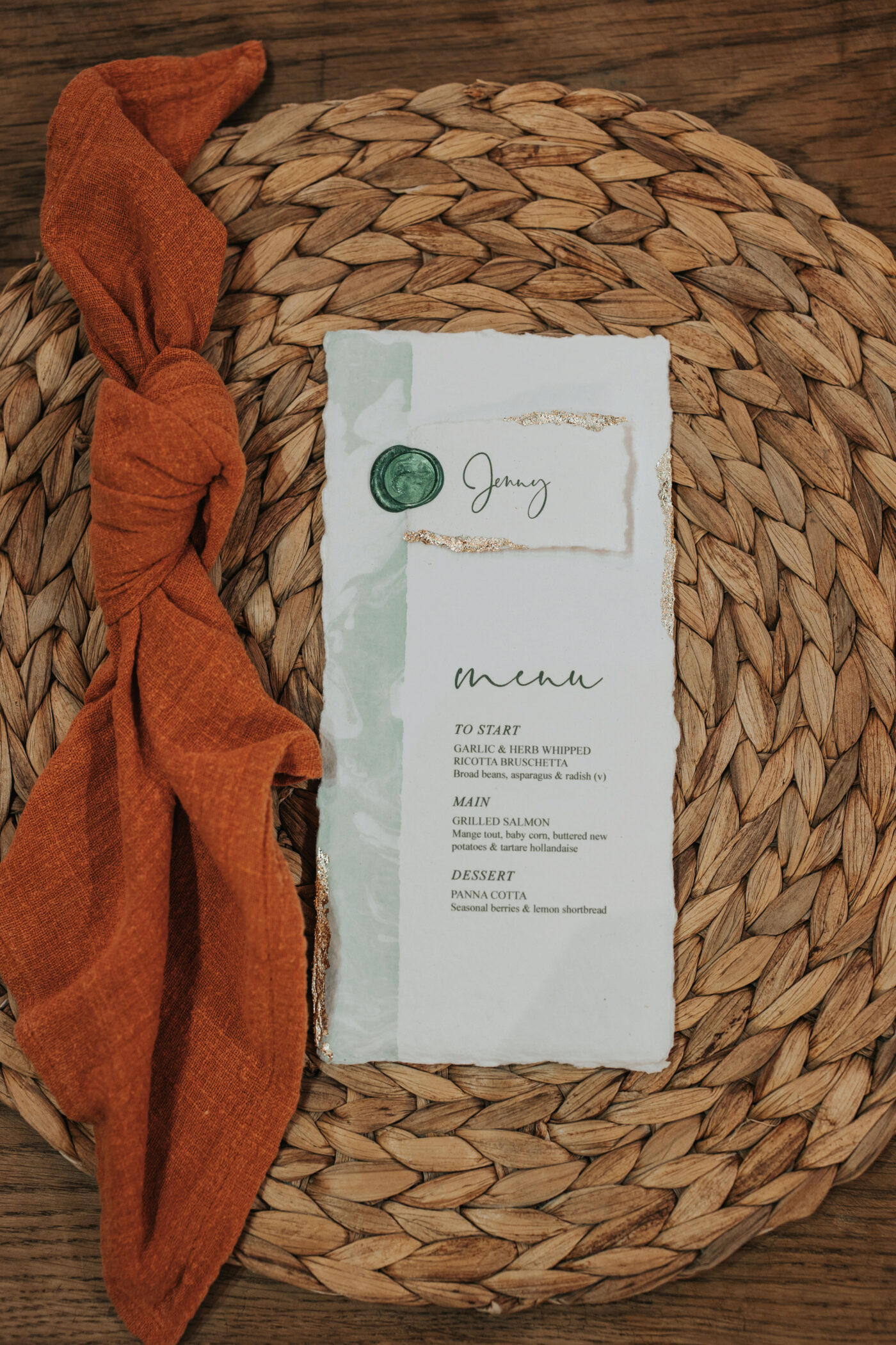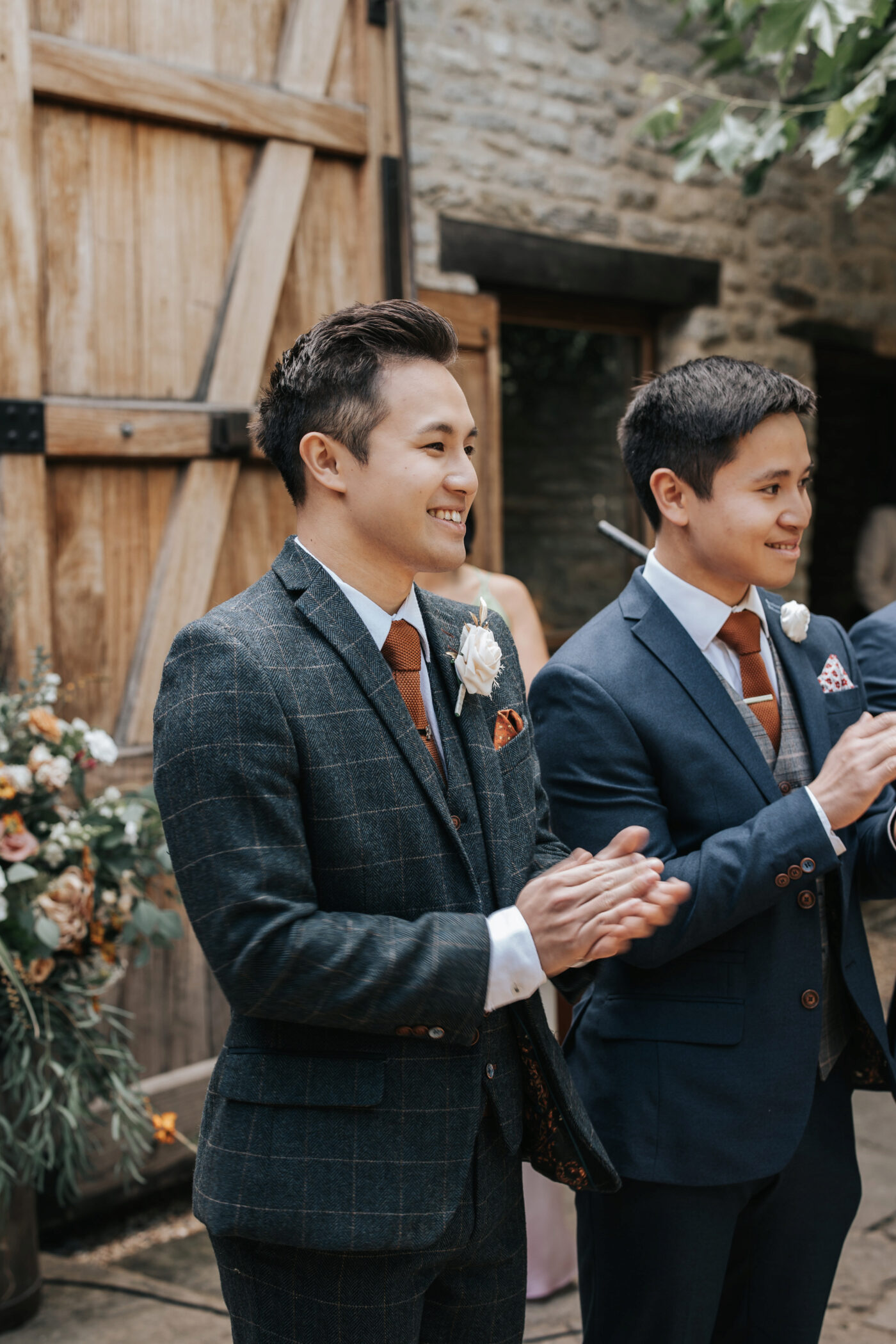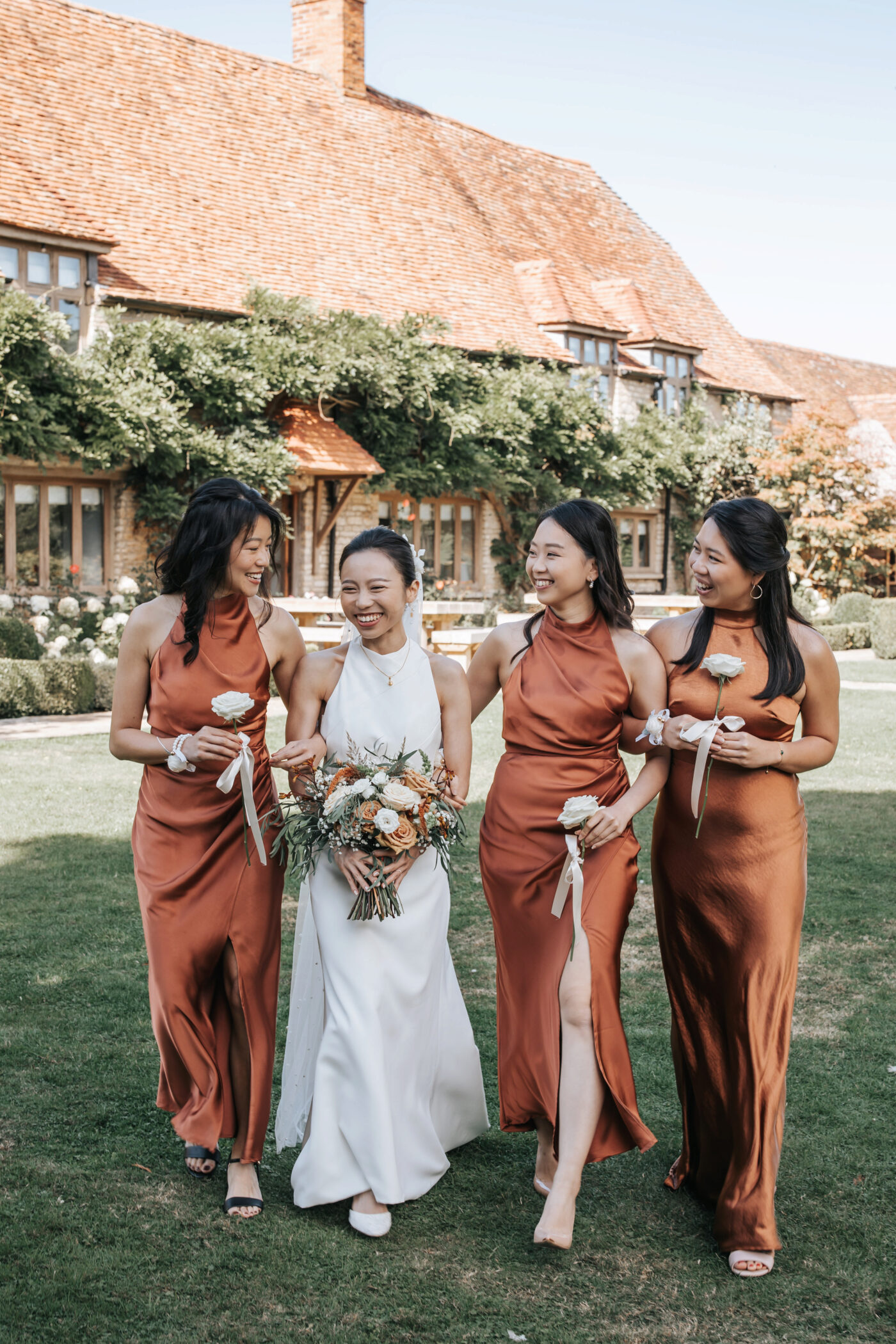 A rustic celebration in Oxfordshire, styled with a warm, earthy palette of terracotta, rust, greens, and creams to evoke natural elegance. The full ceremony and wedding breakfast styling emphasized authenticity and texture, with raw wooden tables dressed in flowing linens, layered ceramics, and seasonal florals.